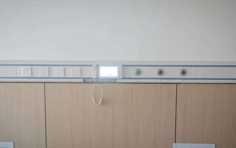 气体终端采用**标准颜色标识(氧气-蓝色、负压-黄色、压缩空气-白色),并标注气体名称及压力范围。