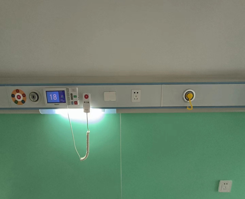 医疗设备带大多数情况都是安装在病房床头的位置,医疗设备带的中心点离地面的标准高度是1400mm,这个高度也是病人使用医疗设备带上各种设施的*佳高度。医疗设备带的出厂尺寸为长度6000mm或5000mm,高度200mm,厚度55mm,医疗设备带铝合金面板的厚度为1.2mm、1.5mm、1.8mm、2.0mm等,医疗设备带的长度可根据用户的实际需求订做。医疗设备带上每个病床都对应有氧气终端、负压吸引终端、床头灯、电源开关、五孔插座、呼叫分机等设备,在每条医疗设备带上都有一个氧气房间维修阀门,安装在氧气管道与设备带连接的地方,病房氧气检修或更换氧气终端时需关闭氧气房间维修阀门。医疗设备带内分三个腔体,完美的解决了气体管道与电线通道不能走一个通道的问题。